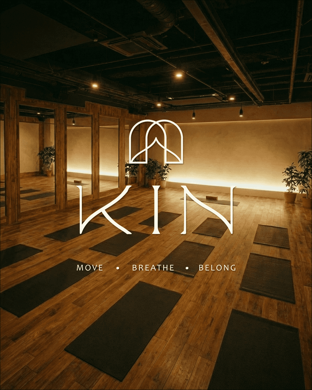 KIN is a community-centered yoga studio built around connection and presence. The branding was developed for a flexible, cohesive system across physical spaces, digital platforms, and branded moments.